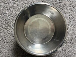 All that said, I will show you an authentic 304 stainless-steel bowl that is about twenty (20) years old. I will also show you a faux stainless-steel bowl that is about one (1) year old and originally came with a dog food bowl raised stand purchased from a major home décor store. This way, you can decide for yourself if the stainless-steel bowls you’re feeding your dog out of are the real deal.