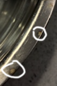 Now that you are up to speed, if you have stainless-steel bowls, especially the ones that are included with a dog food bowl stand, you might notice that after several uses and washings, especially if you use a dishwasher as I do, the bowls you thought were 304 real stainless-steel are now pitted and rusted. I circled them in white.