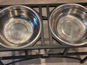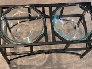 Movin’ on…What other choice do we have? I can only tell you what I use for my dogs. My large-breed dog has a stand for a large-breed dog food bowls. There are two (2) Pyrex 2.5-quart glass bowls replacing the stainless-steel bowls.