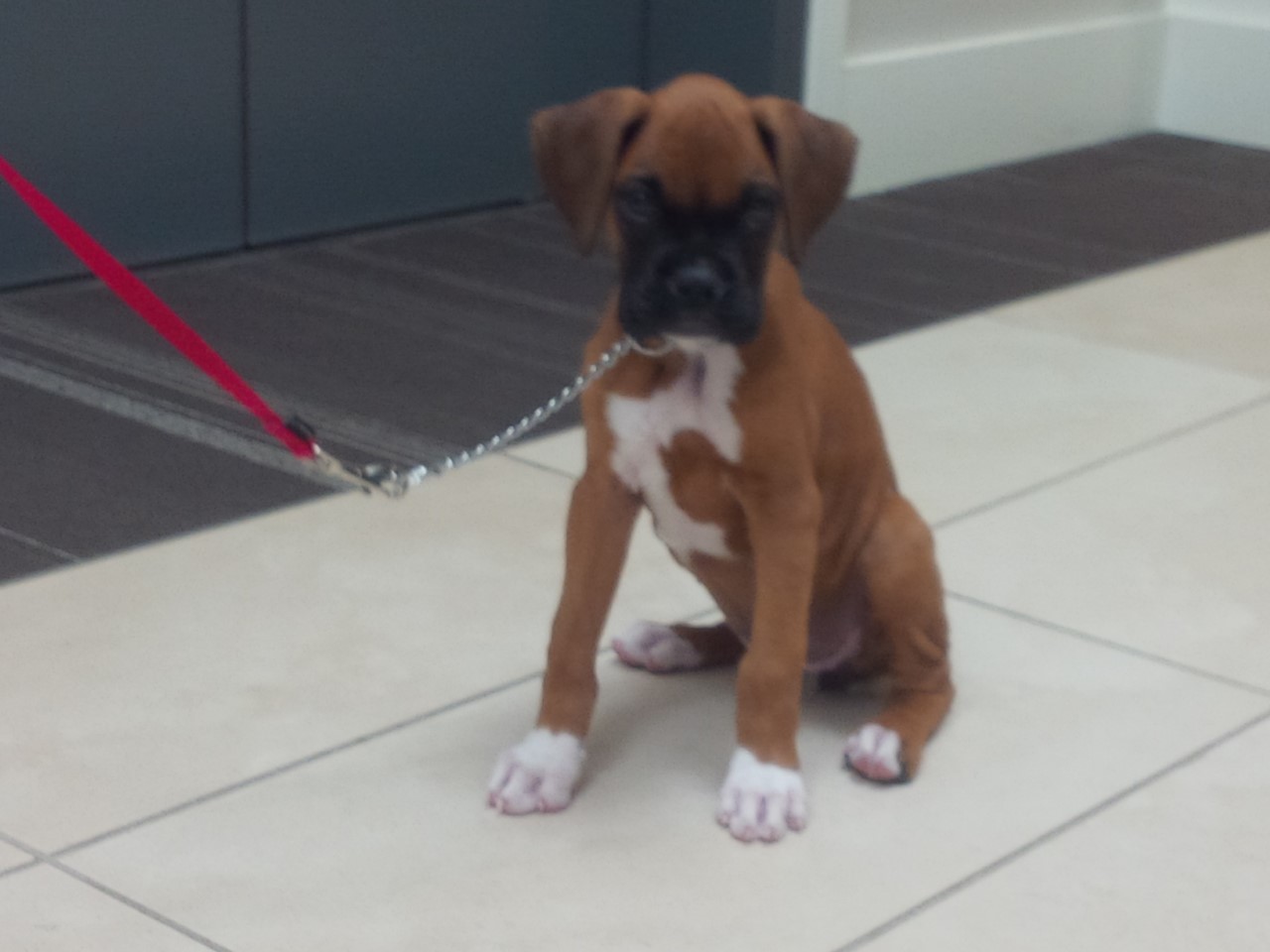 Have your guest take a seat on a kitchen chair, rather than a couch, so that their arms hang down on the sides of the chair. Let your dog come to them and sniff and acknowledge the guest. Any petting should be under the dog’s muzzle and not over his head in all ‘meet and greet’ situations.